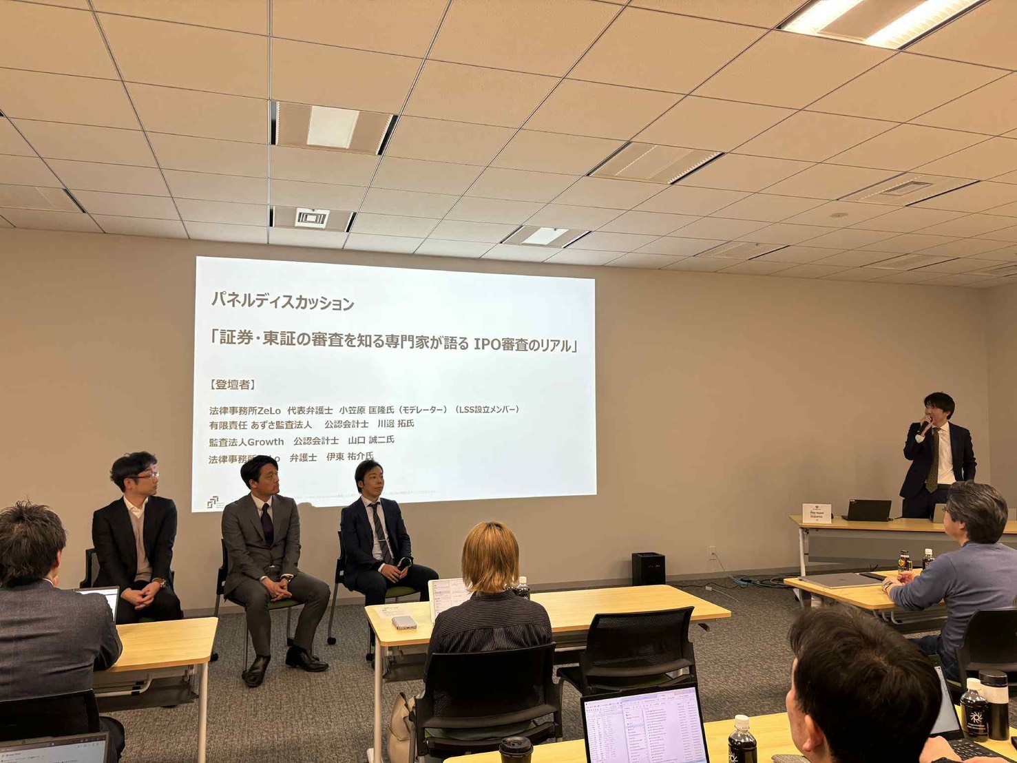 また、審査部から見て安心感のある体制とは何か、経営者が説明すべき事項と専門家に委ねるべき領域の切り分け、専門家主導になりすぎることのリスクについても実務目線で意見が交わされ、これから上場準備を本格化する企業にとっては全体像を整理する機会として、また既に準備を進めている企業にとっては自社の体制や対応状況を見直す上での示唆に富む内容となりました。